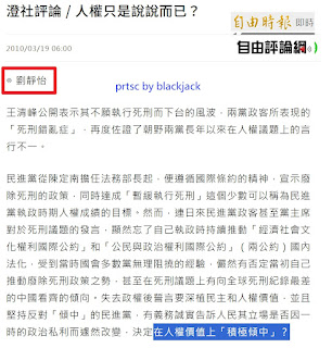 甚至,劉靜怡本人於2010/03/19在自由時報澄社評論 / 人權只是說說而已?有段話: